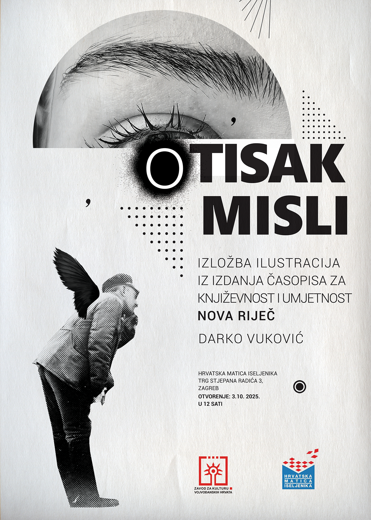 Zavod za kulturu vojvođanskih Hrvata u suradnji s Hrvatskom maticom iseljenika priređuje izložbu grafičkih radova novosadskog dizajnera Darka Vukovića pod nazivom Otisak misli.