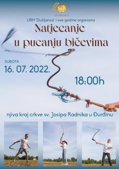 UBH Dužijanca organizira natjecanje u pucanju bičevima u subotu, 16. srpnja na njivi pokraj župne crkve i etno salaša u Đurđinu. Početak manifestacije je u 18 sati.