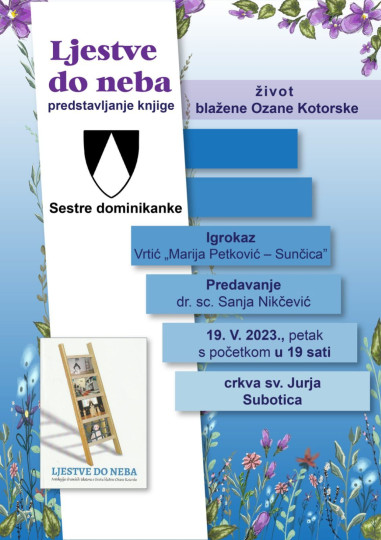 U crkvi sv. Jurja u Subotici će u petak, 19. svibnja 2023. godine u 19 sati biti predstavljena knjiga Ljestve do neba – antologija dramskih tekstova o životu blažene Ozane Kotorske. Predavanje o knjizi će održati teatrologinja i kazališna kritičarka dr. sc. Sanja Nikčević, koja je urednica knjige. Tijekom predstavljanja će djeca iz vrtića Marija Petković Sunčica izvesti igrokaz.