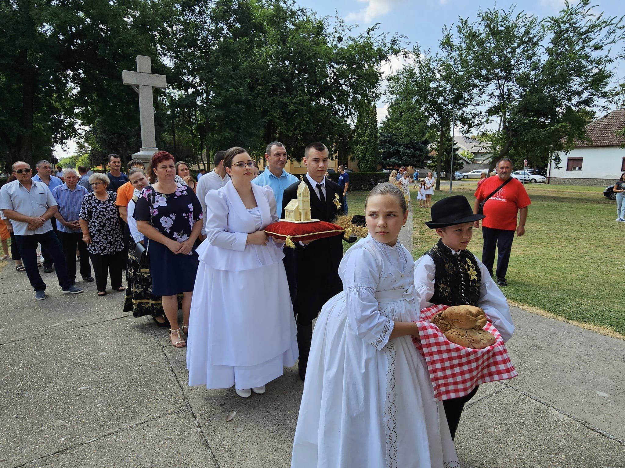 Vlč. Marinko Stantić podsjetio je kako su bandaš i bandašica izabrani u ime cijele župe zahvaliti Bogu za plodove žita: „Biti izabran da u ime svih Bogu kažete hvala za kruh naš svagdašnji, nije samo čast, nego i djelo koje zaslužuje da Bogu bude ugodno. S vama su risari i risaruše koji su po onoj drevnoj tradiciji, zajedno s vama bili u žetvi, odnosno ubirali plodove. Htio bih vam reći hvala što ste bili dostojni da upravo vas župnik izabere jer je u vama prepoznao vjeru. Hvala i vašim roditeljima što su vas kršćanski odgojili, usmjerili u tom pravcu i što vas danas možemo vidjeti na oltaru“, kaže vlč. Stantić.