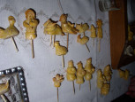 Ukrasi se izrađuju od tvrđeg beskvasnog tijesta tijekom cijelog adventa i u tome sudjeluju žene i djeca. Pravljenje figurica za božićnjak bila je prava radost u obitelji, naročito za djecu. U sredinu božićnjaka ponekad se utakne posebno ispečena božićna grana (božićno drvce). Tako oblikovan božićnjak premazuje se žumanjkom i stavlja se u pećnicu, odnosno tradicionalno u krušnu peć. Božićnjak nekad nije bio nakićen kao danas.