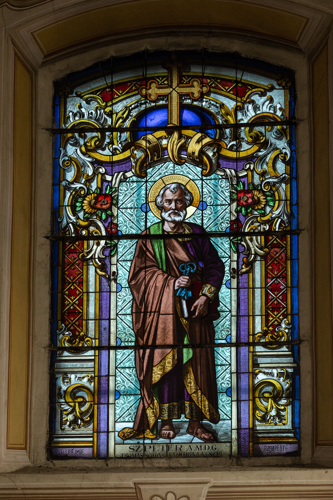 Oltari bajmačke crkve, kako glavni tako i sporedni te pripadajući im kipovi, pribavljeni su od strane poznate tirolske radionice obitelji Stuflesser. Vitraji sa likovima svetaca napravljeni su u peštanskoj radionici Imrea Zselléra (1878. – 1959.) čija se djela nalaze u brojnim važnim objektima tadašnje monarhije, pa tako i u subotičkoj Gradskoj kući. Imre Zsellér rođen je 1878. godine u Budimpešti, učio je u radionici Mikse Rótha a 1903. godine otvara vlastitu radionicu. On je autor vitraja na brojnim javnim zgradama i na više od stotinu crkava, a najpoznatiji rad je svakako izrada prozora za koncertnu dvoranu Nádor u Pešti. Značajna djela ostvario je i kao mozaičar. Izradio je 1917. godine najveći mozaik u srednjoj Europi za župnu crkvu Svete Obitelji u Zugligetu. Izvan Budimpešte, većinu radova ostvario je u kaločkoj nadbiskupiji a radio je skupa s Gyulom Petrovczem, koji je dvadeset i pet godina bio glavni arhitekt nadbiskupije. Zsellér je, gotovo bez iznimke, izradio prozore za sve crkve izgrađene ili obnovljene u biskupiji tijekom ovih godina.
