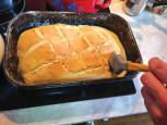 Uz gra se pravila i pogača. Zanimljiva je priča iz Berega da se voda kojom se umivala pogača koristila kao narodni lijek. „Dica koja nisu dugo progovorila umivala su se u vodi kojim se umivala pogača. Virovalo se da ta voda pomaže dici da progovore“, kaže Anica Gorjanac koja je pripremala suparni gra i pogaču.