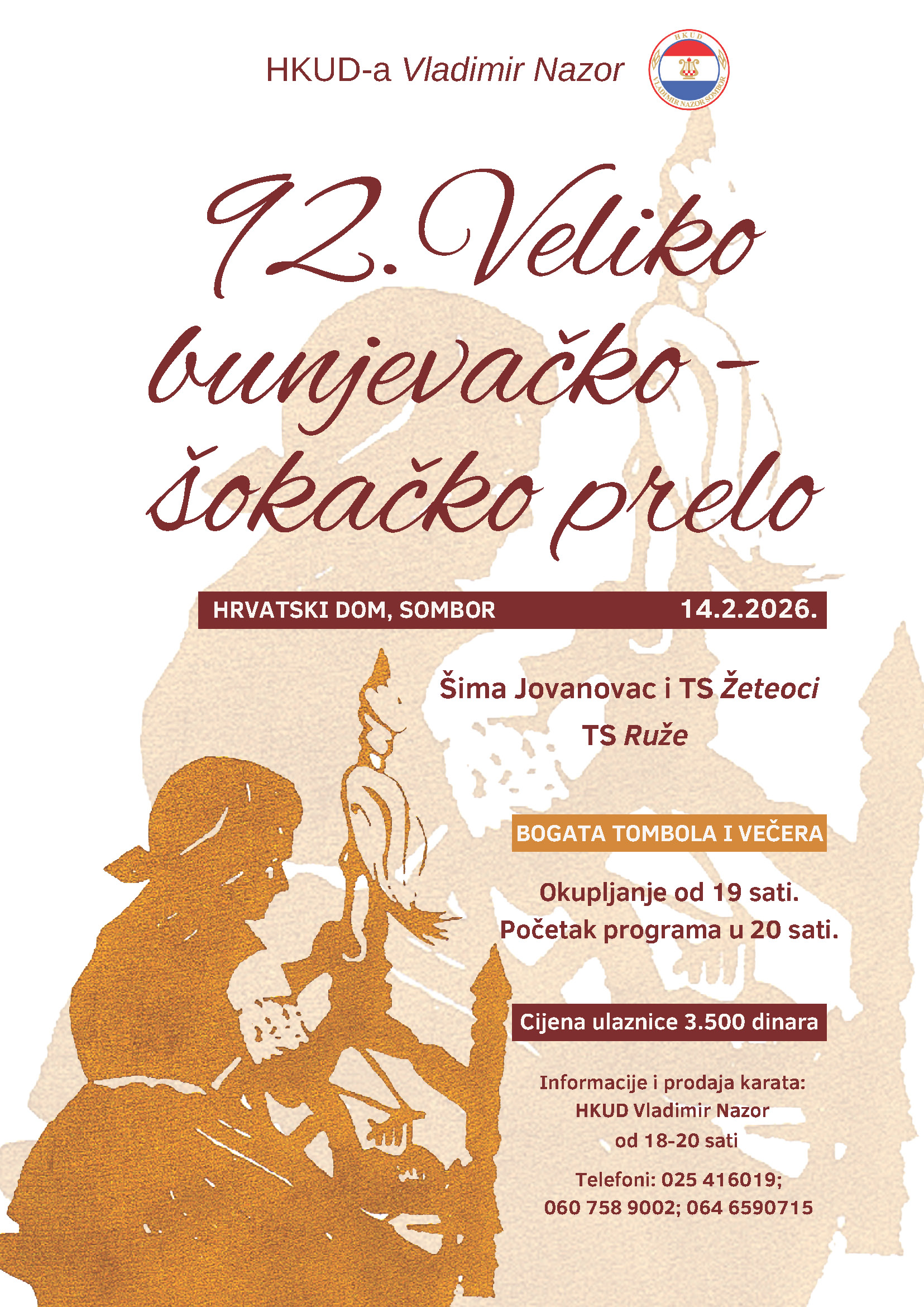 Cijena ulaznice, u koju je uračunata bogata tombola i večera je 3.500 dinara. Informacije i prodaja karata u prostorijama HKUD-a Vladimir Nazor od 18 do 20 sati, i putem telefona 025/416-019, 060/758-9002 i 064/659-0715.
