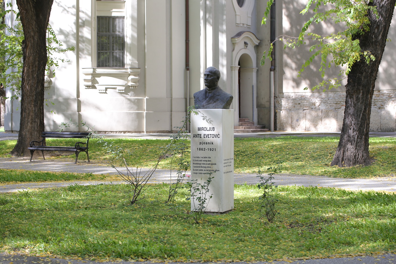 Miroljub Ante Evetović (Bački Aljmaš, 1862. – Valpovo, 1921.) bio je franjevac, pjesnik, profesor filozofije i crkvene povijesti. U okvirima obilježavanja 250. obljetnice doseljenja veće skupine Bunjevaca u Bačku 1936. godine u Subotici mu je kod katedrale Svete Terezije postavljeno poprsje, rad Ivana Meštrovića. Poprsje je uklonjeno 1941. nakon početka okupacije, a 10. kolovoza 1996. godine vraćeno je na isto mjesto u parku kod subotičke katedrale gdje se nalazi okruženo zelenilom s južne strane crkve a orijentirano je prema Somborskoj cesti.
