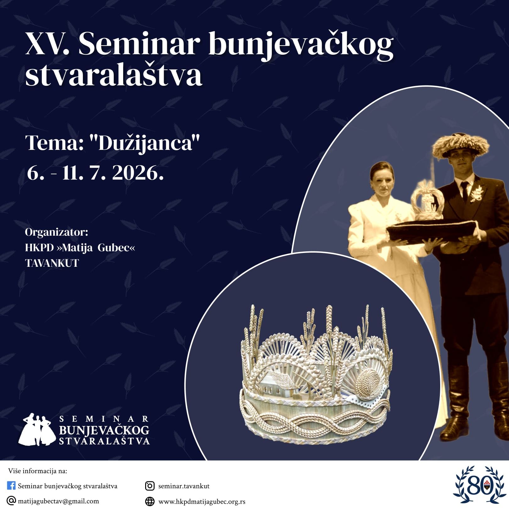 Seminar bunjevačkog stvaralaštva, koji se organizira petnaesti put, bit će održan od 6. do 11. srpnja (jula) 2026. godine u Tavankutu u organizaciji mjesnog HKPD-a Matija Gubec. Tema ovogodišnjeg seminara je Dužijanca. Seminar obuhvaća teme plesa, tamburaške tradicijske melodije i tradicijske vještine – izrada predmeta od slame. Prijavljeni polaznici se opredjeljuju za jedno od ova četiri područja.