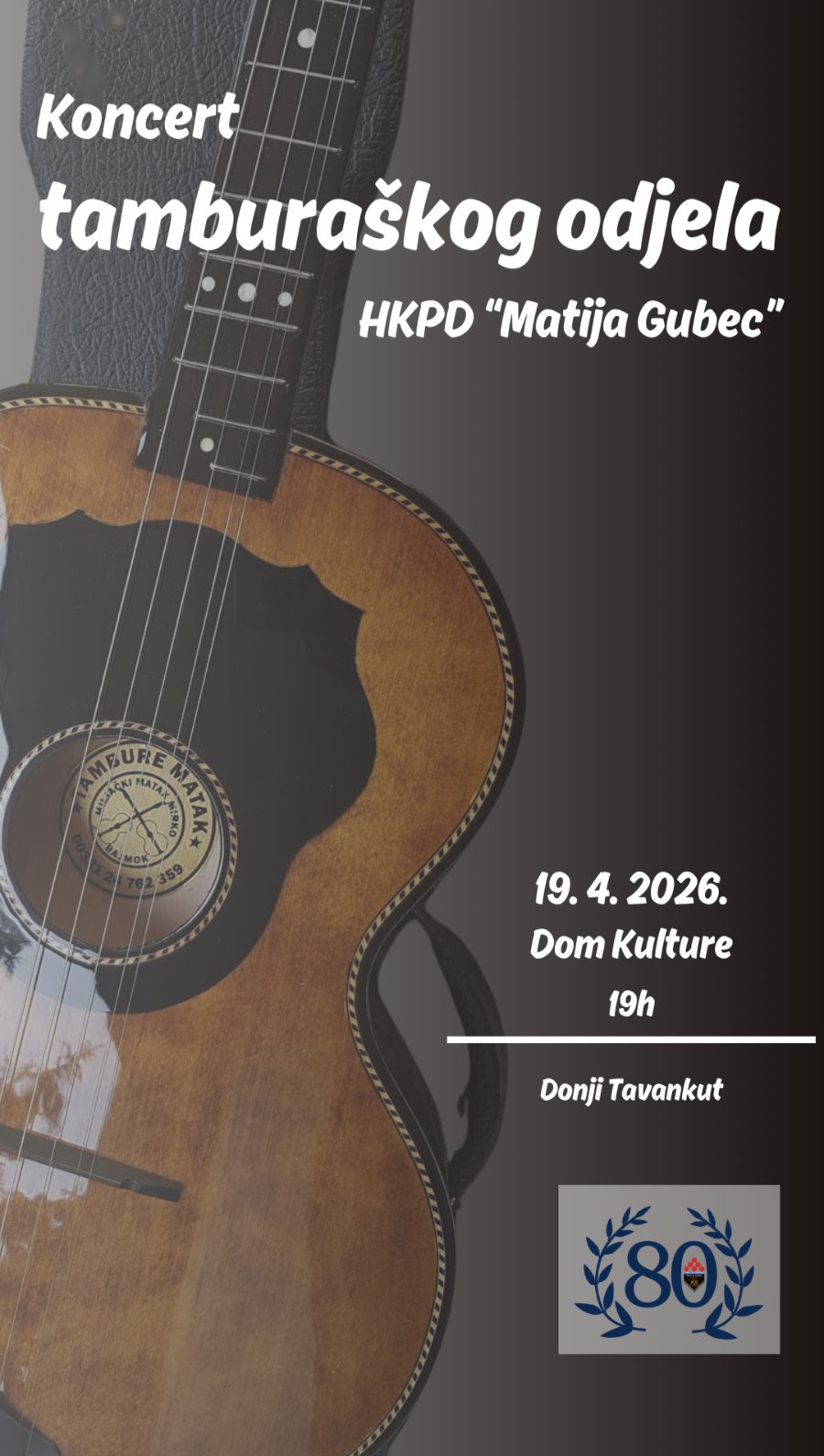 Povodom obilježavanja 80. obljetnice djelovanja HKPD Matija Gubec iz Tavankuta priređuje svečani koncert tamburaškog odjela.